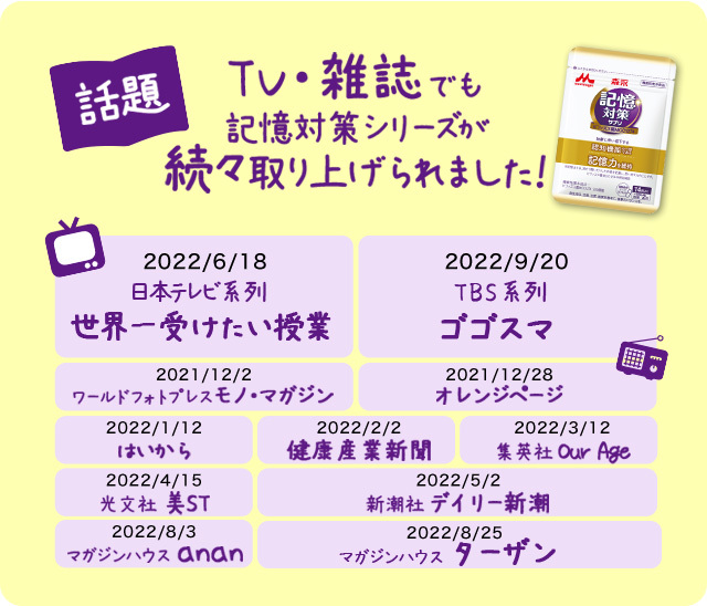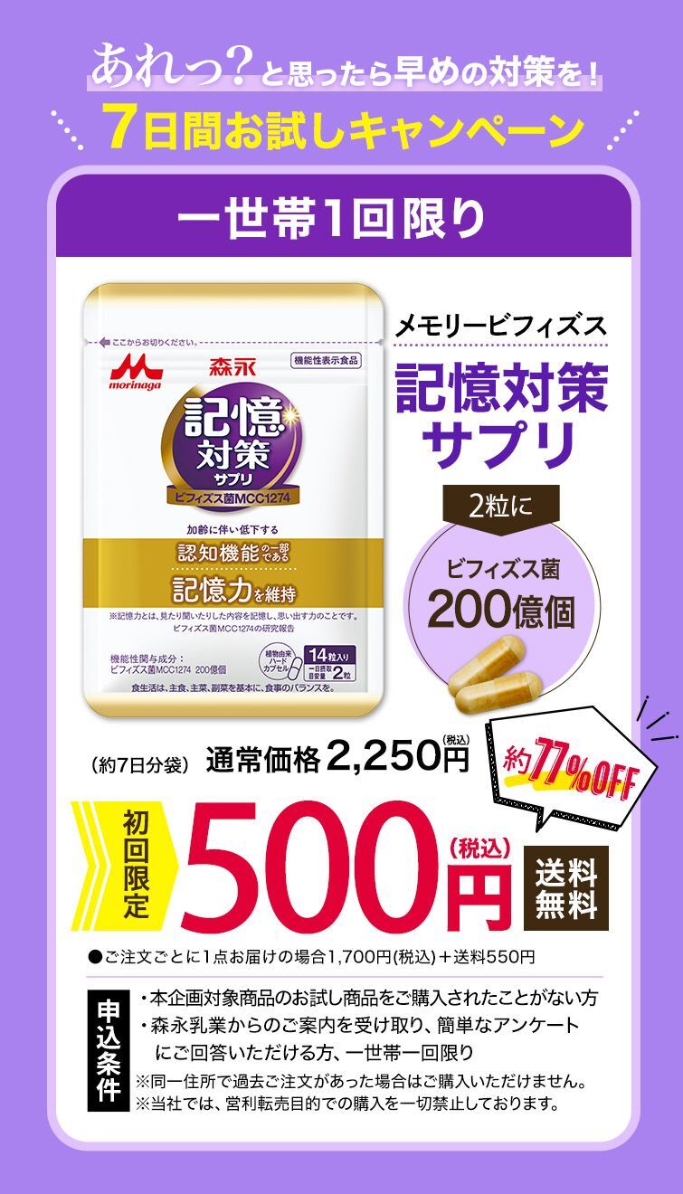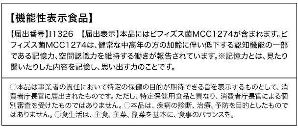 ※ビフィズス菌MCC1274は、メモリービフィズス記憶対策サプリにのみ含まれています。